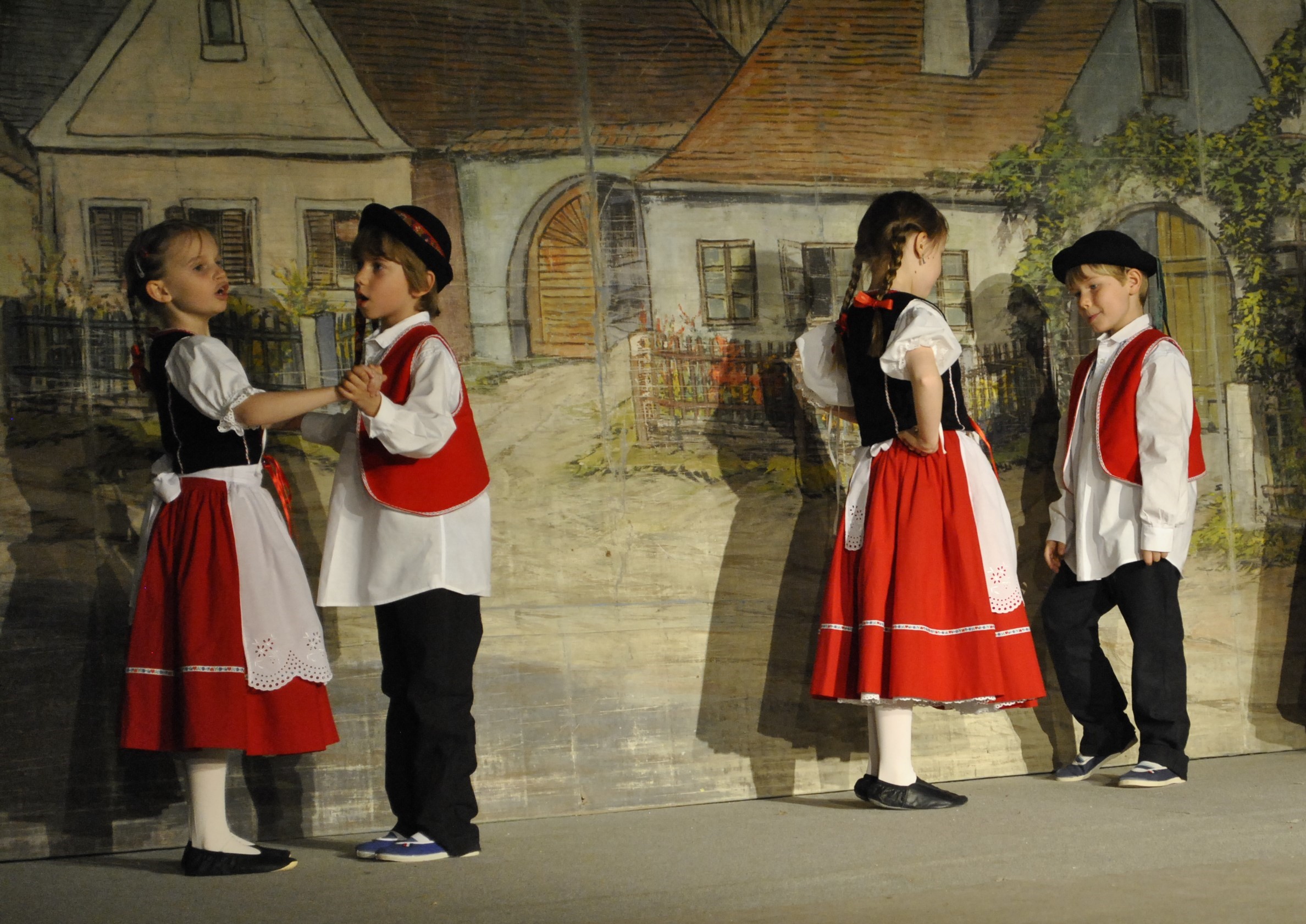 Mit dem geplanten Konzert entstand die Notwendigkeit, Trachten für die Kinder zu beschaffen. Es handelte sich um ein anspruchsvolles Projekt – es war notwendig, ihr Aussehen zu entwerfen, geeignete Materialien auszuwählen, die Anfertigung sicherzustellen und nicht zuletzt die Finanzierung zu klären. Alles konnte schließlich fristgerecht umgesetzt werden, sodass die Kinder erstmals stolz in den rot‑schwarzen Trachten aus der Werkstatt von Ivana Blanářová aus Brumovice auftreten konnten, die dank der Unterstützung des Tschechoslowakischen Auslandsinstituts finanziert wurden.