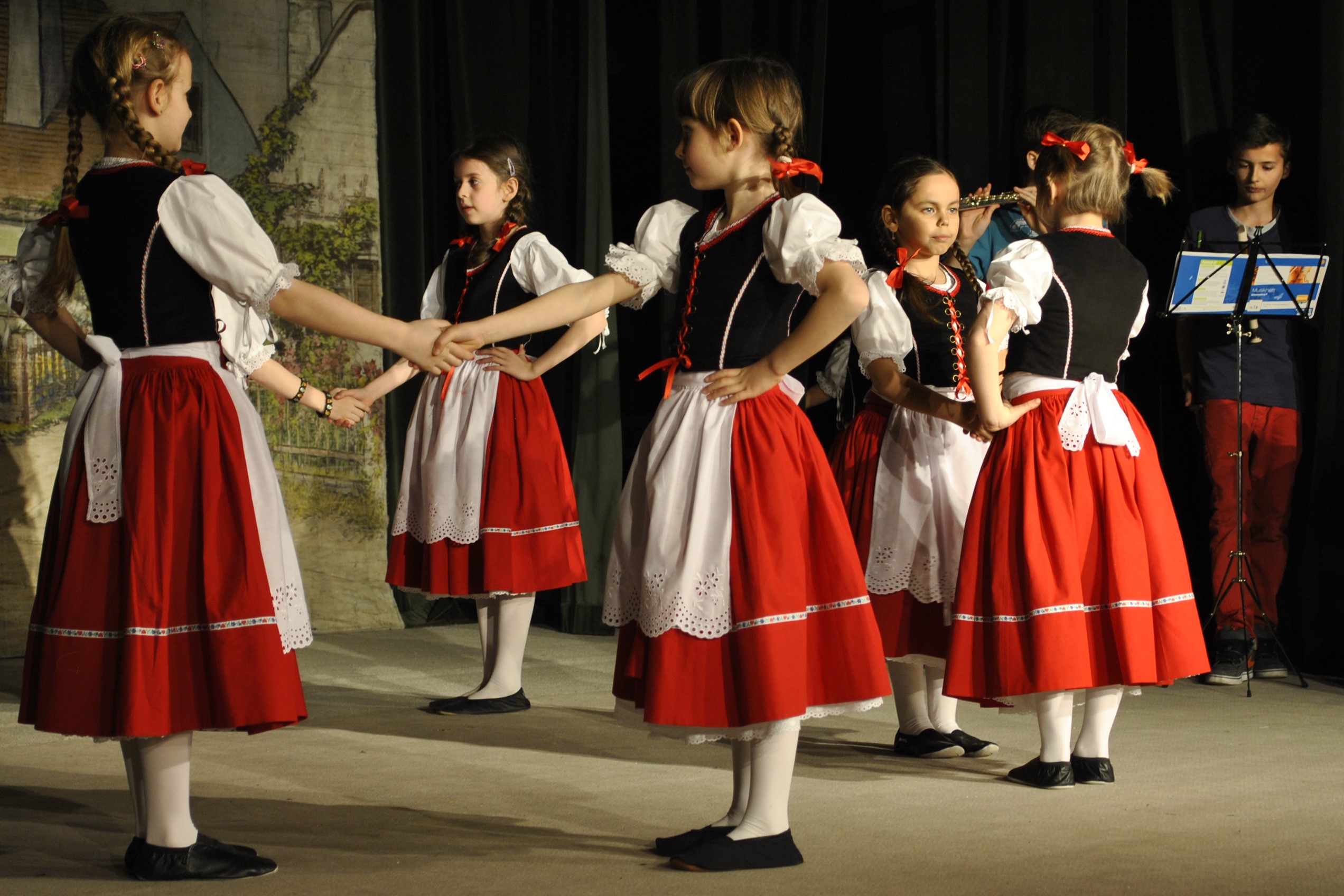 Die Mädchen aus der älteren Gruppe wurden musikalisch von Schülern der Komenský‑Schulen der Sekundarstufe begleitet, unter der Leitung von Christa Cernajsek, die im Jahr 2018 die erste "Primus" der neu gegründeten Zymbal‑Musikensemle Marjánka wurde