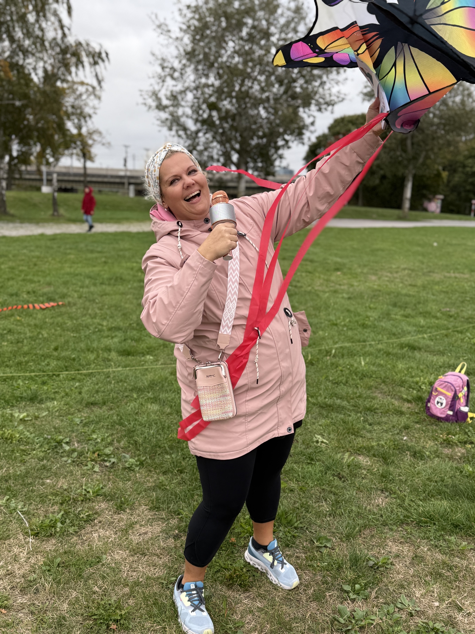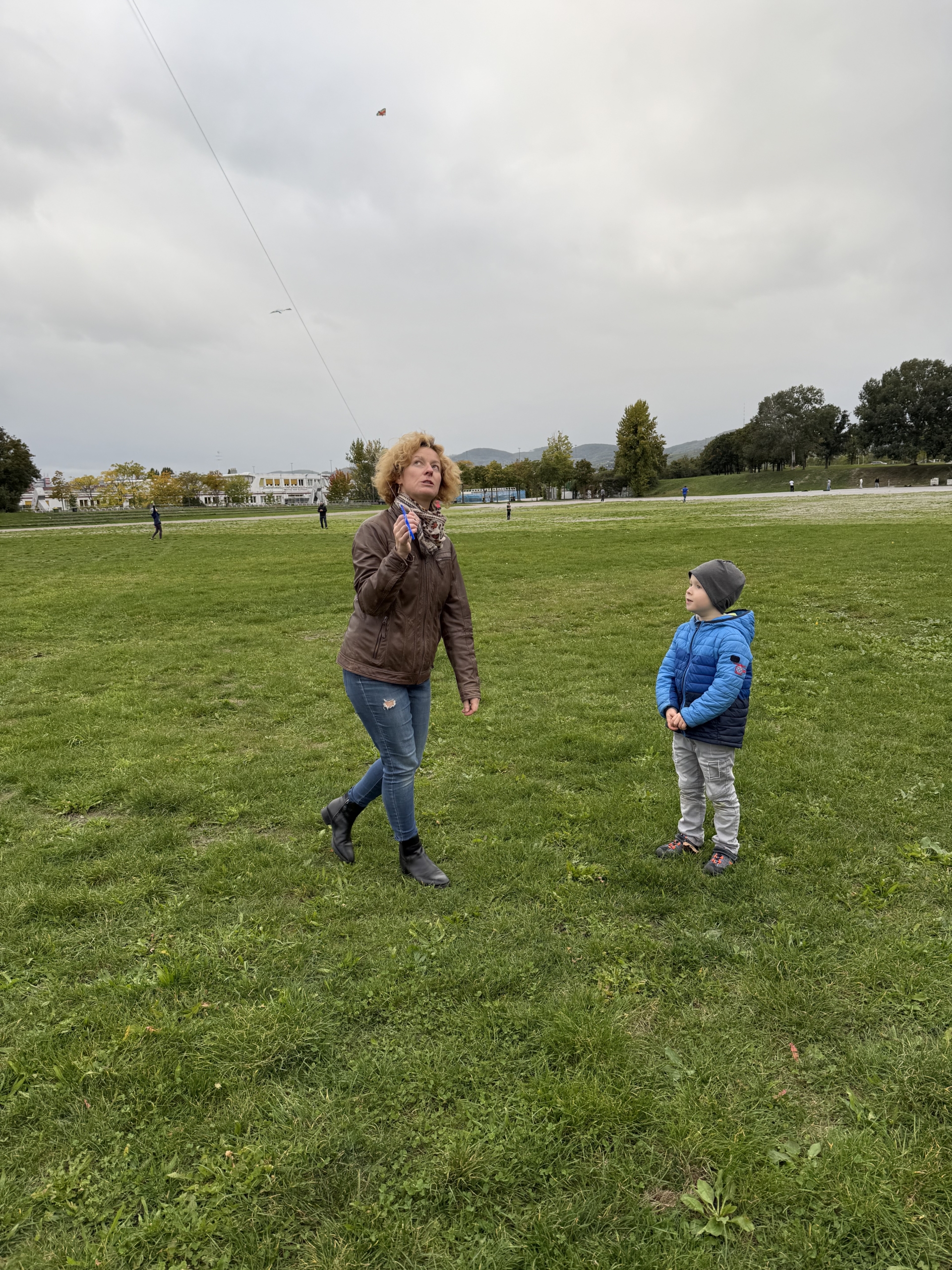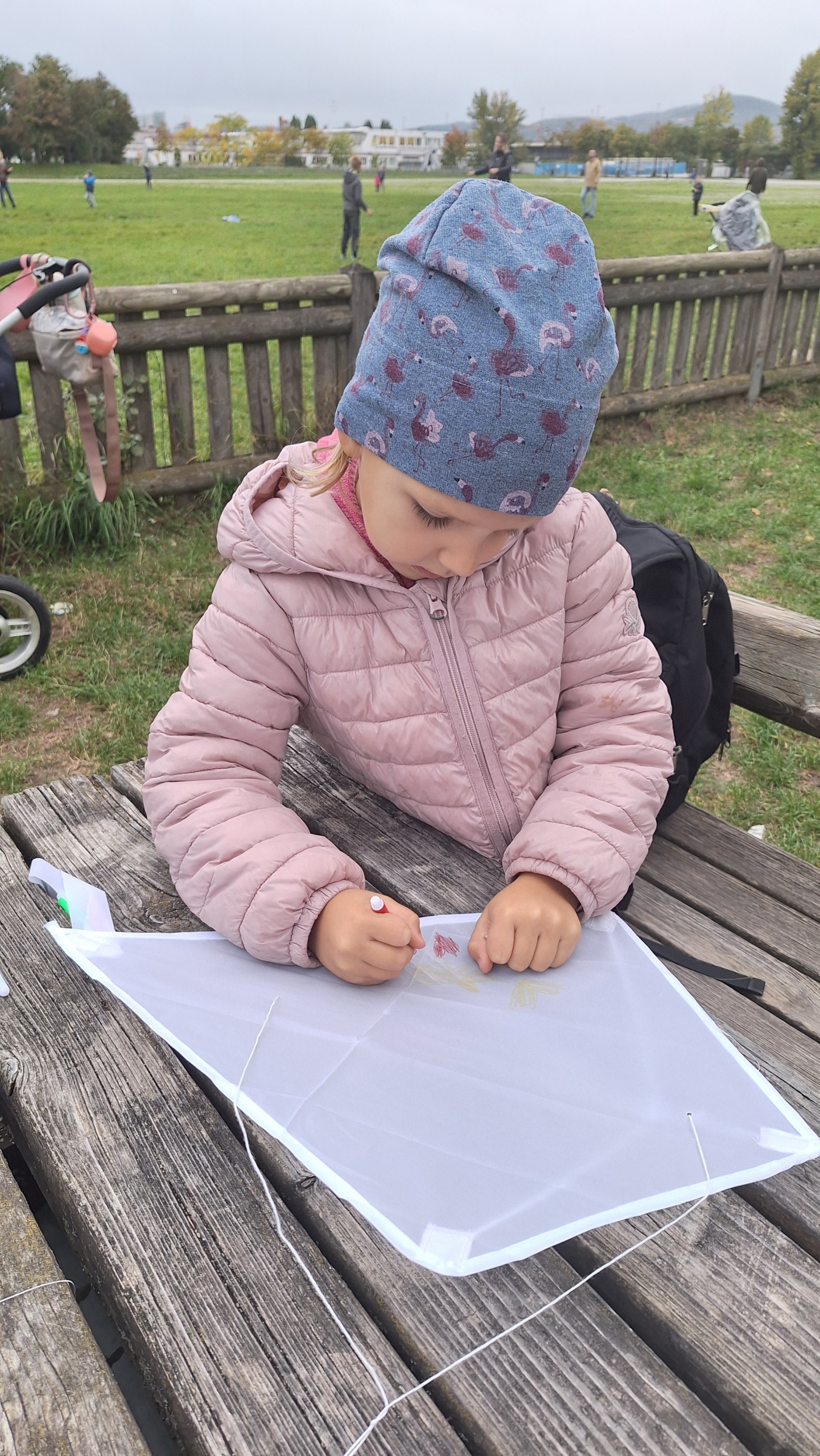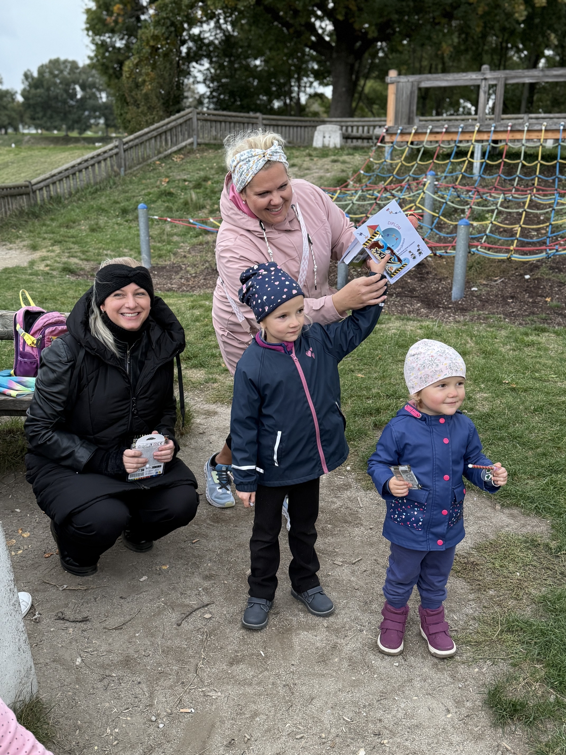 Trošku nám mžilo, ale nikomu drobné kapičky nevadily – naopak, jen přidaly na podzimní atmosféře. Vzduchem se s dráčky nesly i salvy smíchu, hlavně když se dva létající krasavci do sebe zapletli nebo se rozhodli přistát střemhlav na nejbližším stromě. Termosky s čajem a svačinky na posilněnou přišly vhod, a všechny děti dostaly sladkou odměnu v podobě vlastnoručně upečeného perníkového dráčka od členky spolku a organizátorky Míši Albadri.