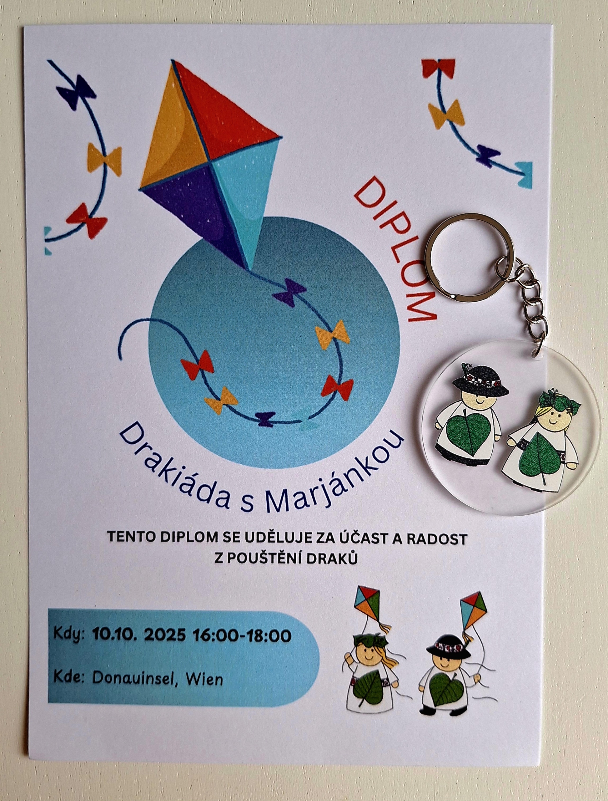 V pátek odpoledne se pošmourná obloha nad vídeňským ostrovem Donauinsel rozzářila barvami. Členové spolku Marjánka se rozhodli společně přivítat podzim a sešli se na první marjánkovské drakiádě. Akce však nebyla určena jen členům spolku, ale i široké veřejnosti, především té české a slovenské. Vítr foukal jako na přání a pestrobarevní draci se vznášeli vysoko nad loukou.